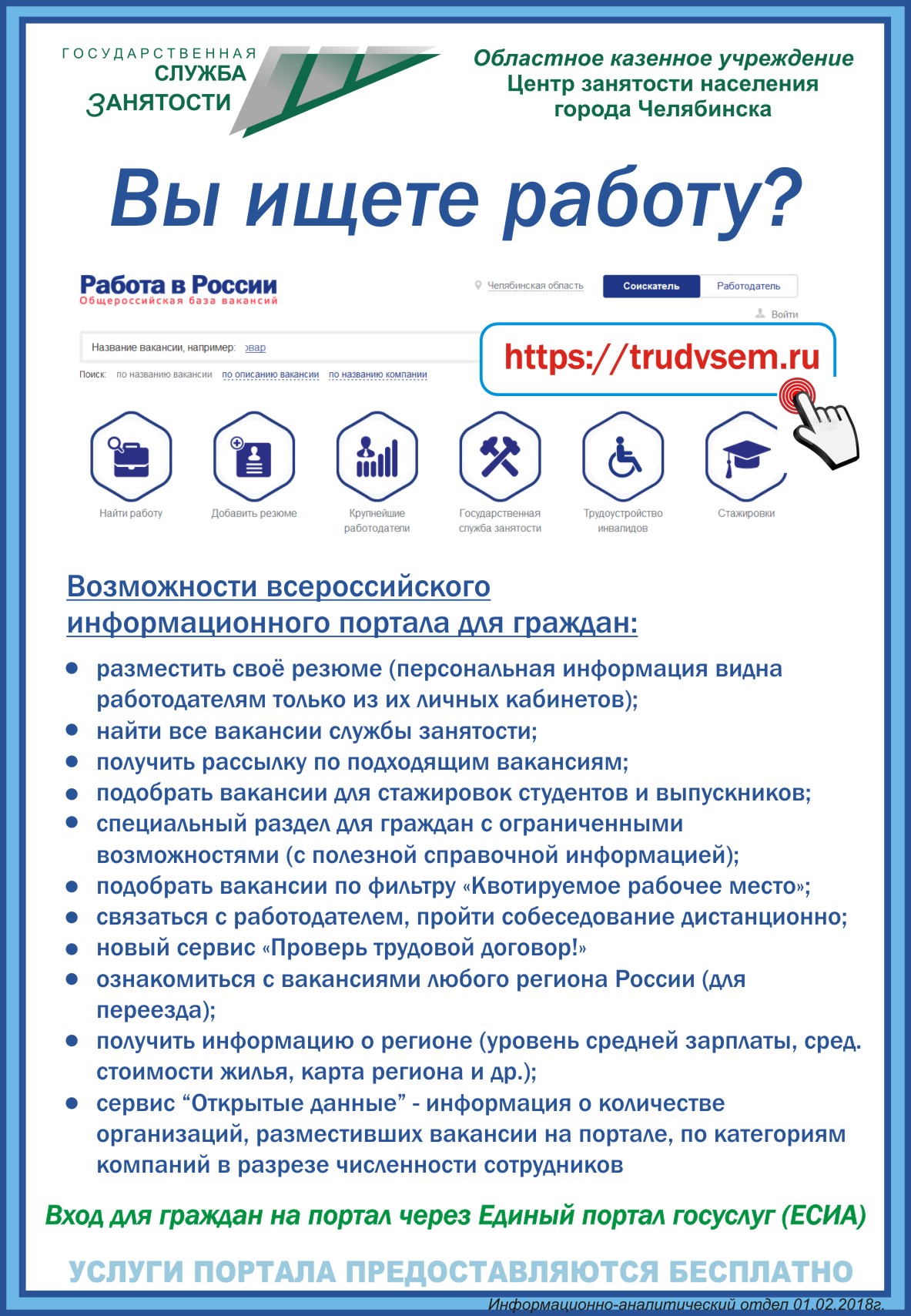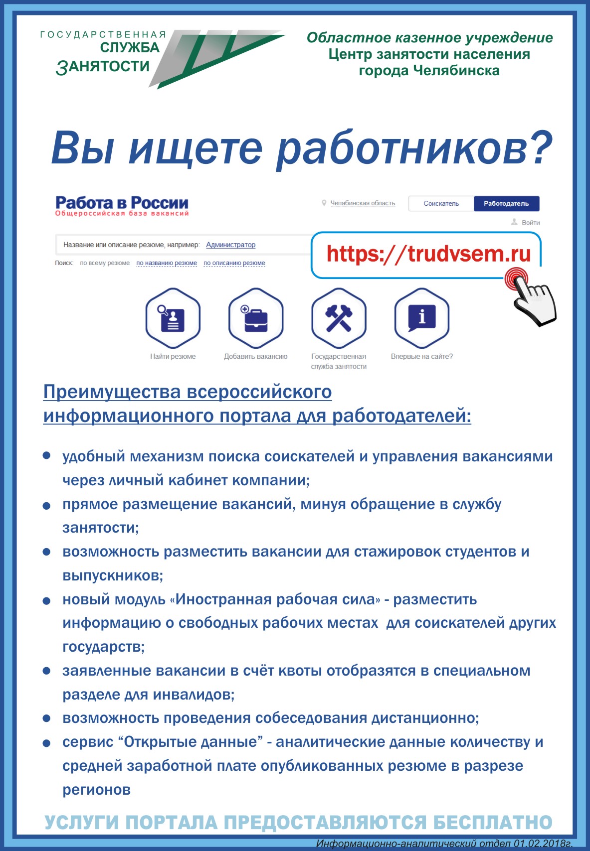 4. Количество вакансий, которыми располагает служба занятости, - 10772 ед. (на 31.12.2018 – 9516 ед.) по Челябинской области – 25186 ед.